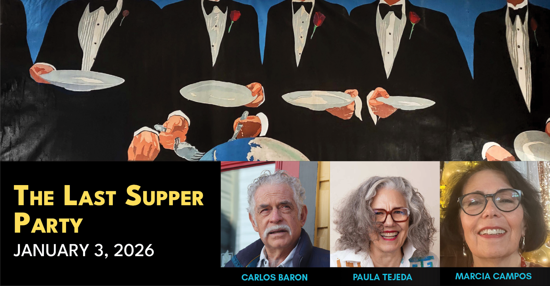 The Last Supper Party presents the voices of diverse artists and writers who call out the myriad injustices and impacts of corruption, unchecked power and greed.