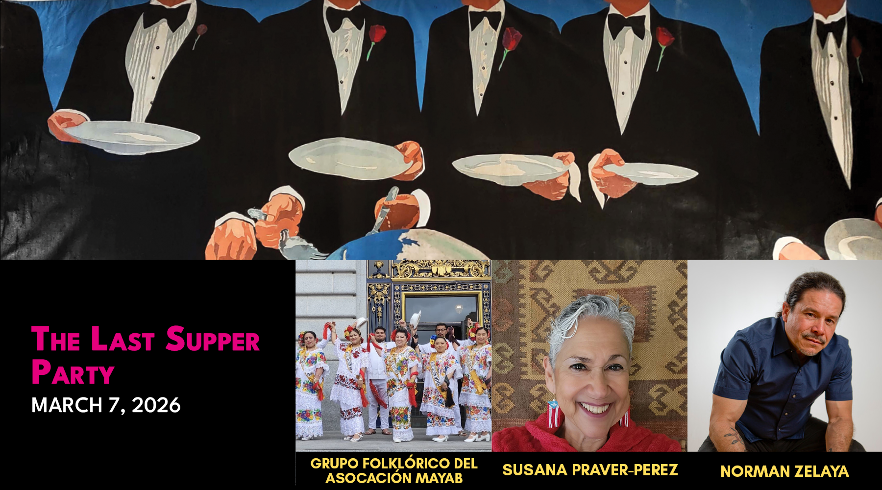 The Last Supper Party is a monthly spoken word and music performance series inspired by Fe Bongolan’s landmark painting of the same name; a 200 sq. ft. canvas that covered one wall of our office when we were housed on Sutter Street during the COVID-19 pandemic.